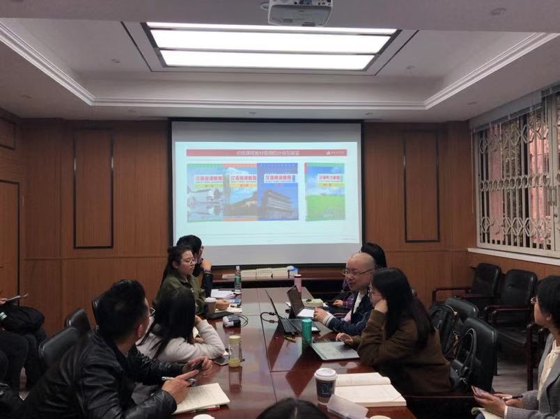 优秀的汉语教材不仅能更好地促进教与学,还能作为向外展现中国国情文化的窗口,当前国家越来越重视汉语教材的编写。编写并使用方向明确,贴近实际生活,形式灵活多样的教材成为对外汉语教学的重点之一。为更好的促进汉语教学质量,提高本校留学生汉语技能和素质,10月31日,我院初级汉语教研室在学院二楼会议室举行了主题为“初级课程教材的使用与优化”的教研活动,就目前学院初级汉语教学中采用的教材情况进行了讨论。