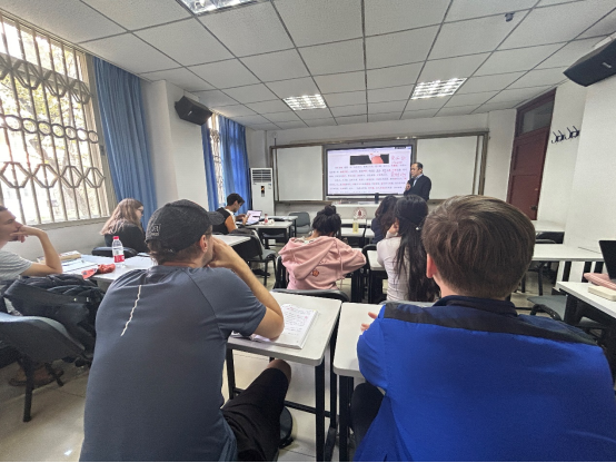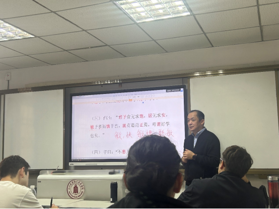 2024年10月14日上午,海外教育学院高级汉语教研室举行了公开观摩课活动。来自初、中、高级汉语教研室的老师们和部分青年兼职教师共同观摩了游黎老师为高级班留学生讲授的《古代汉语》课程。
