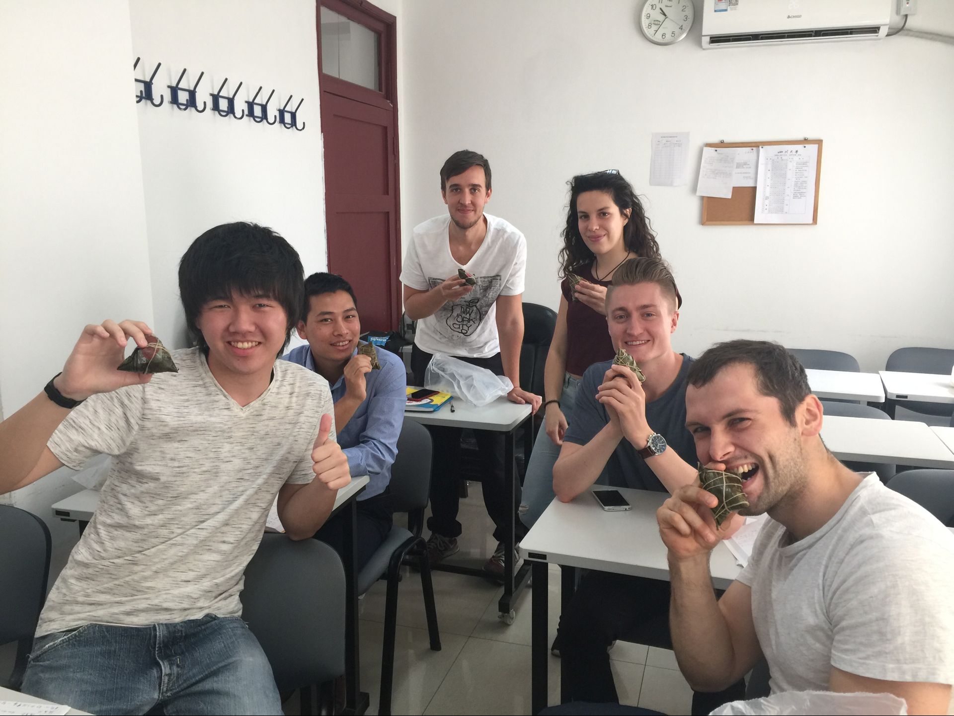 活动主要包括三个环节。首先,海外教育学院的老师们生动、详细地为留学生讲解了端午节的历史与文化渊源,以及流传至今的各地风俗,学生们兴趣盎然。接着,在品尝粽子的过程中,许多留学生对这一传统端午美食的外形、制作工艺及其文化象征意义都有了更为深刻的认识,一些学生还就此与自己国家的类似节日、风俗与相关食物进行了对比。随后,在老师的引导下留学生们围绕传统节日在各国当代文化中的积极作用及发展方向进一步展开了讨论,现场气氛十分热烈。