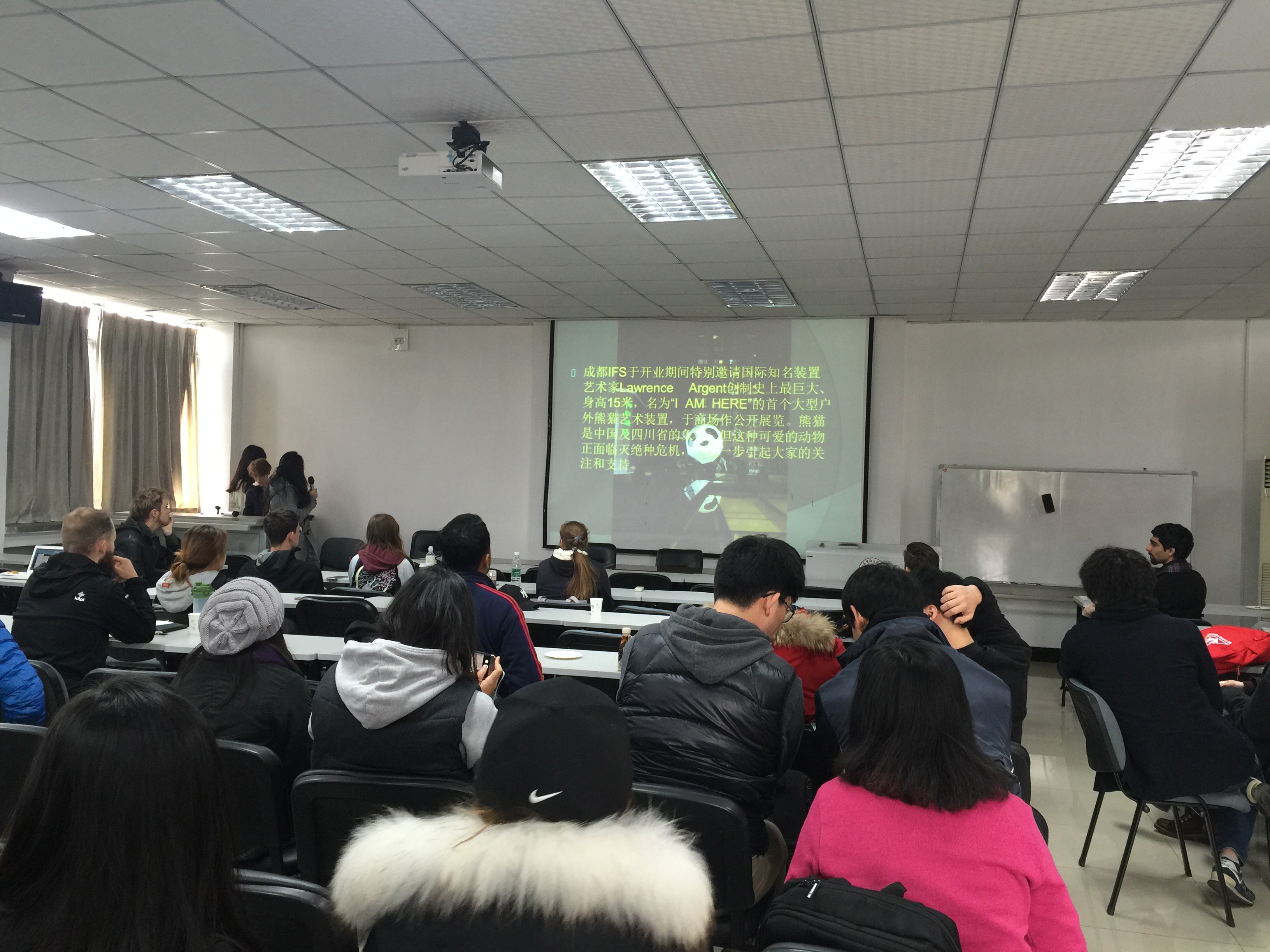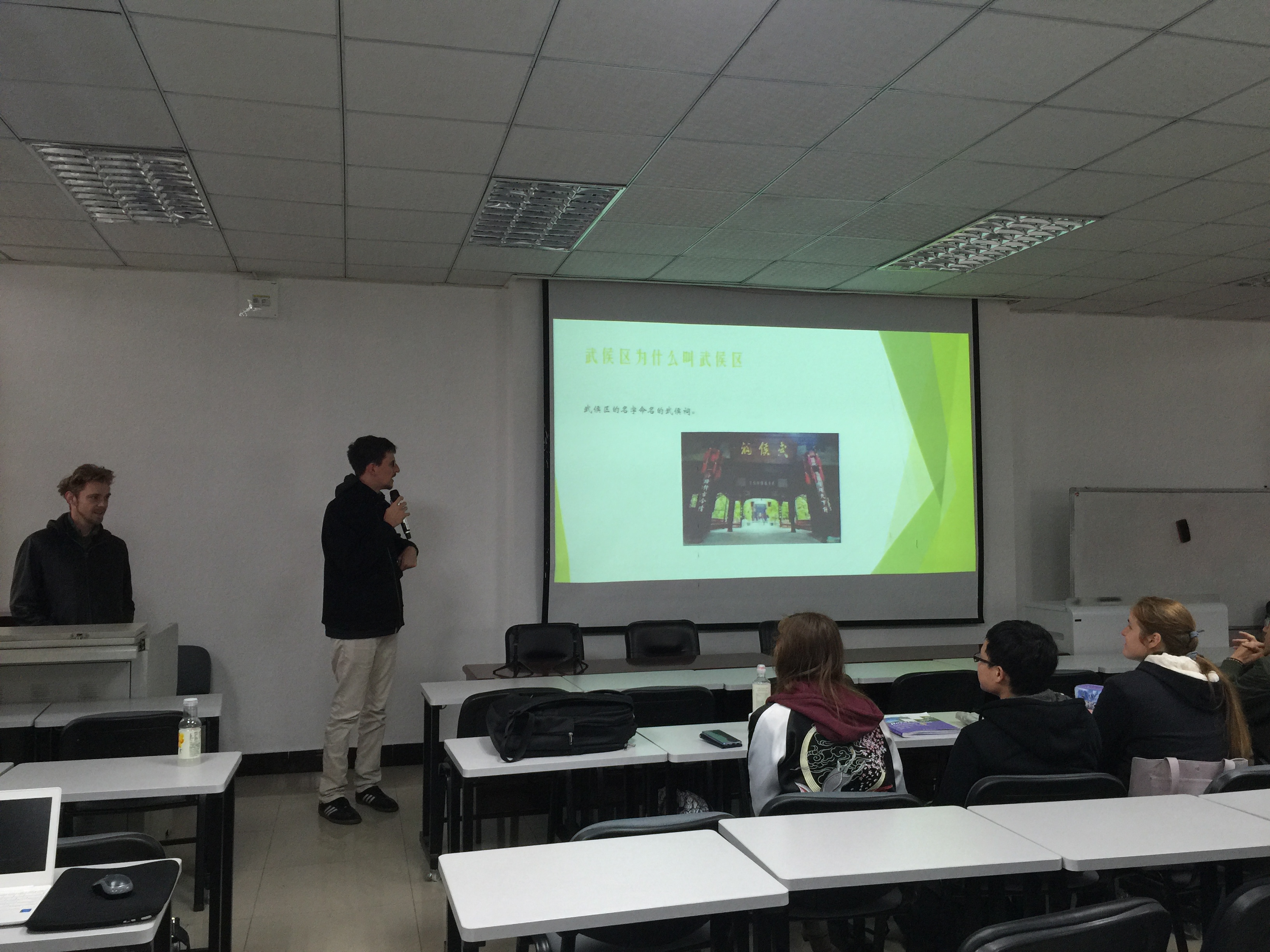 中级一班的任务是成都的行政区,代表发表的同学是李玖和本杰明,他们选择了yl23455永利集团所在的武侯区进行调查,两位同学来到公园,街道,用自己的眼睛发现着不一样的武侯区,不仅了解了武侯区的历史还发现了武侯区不一样的悠闲。