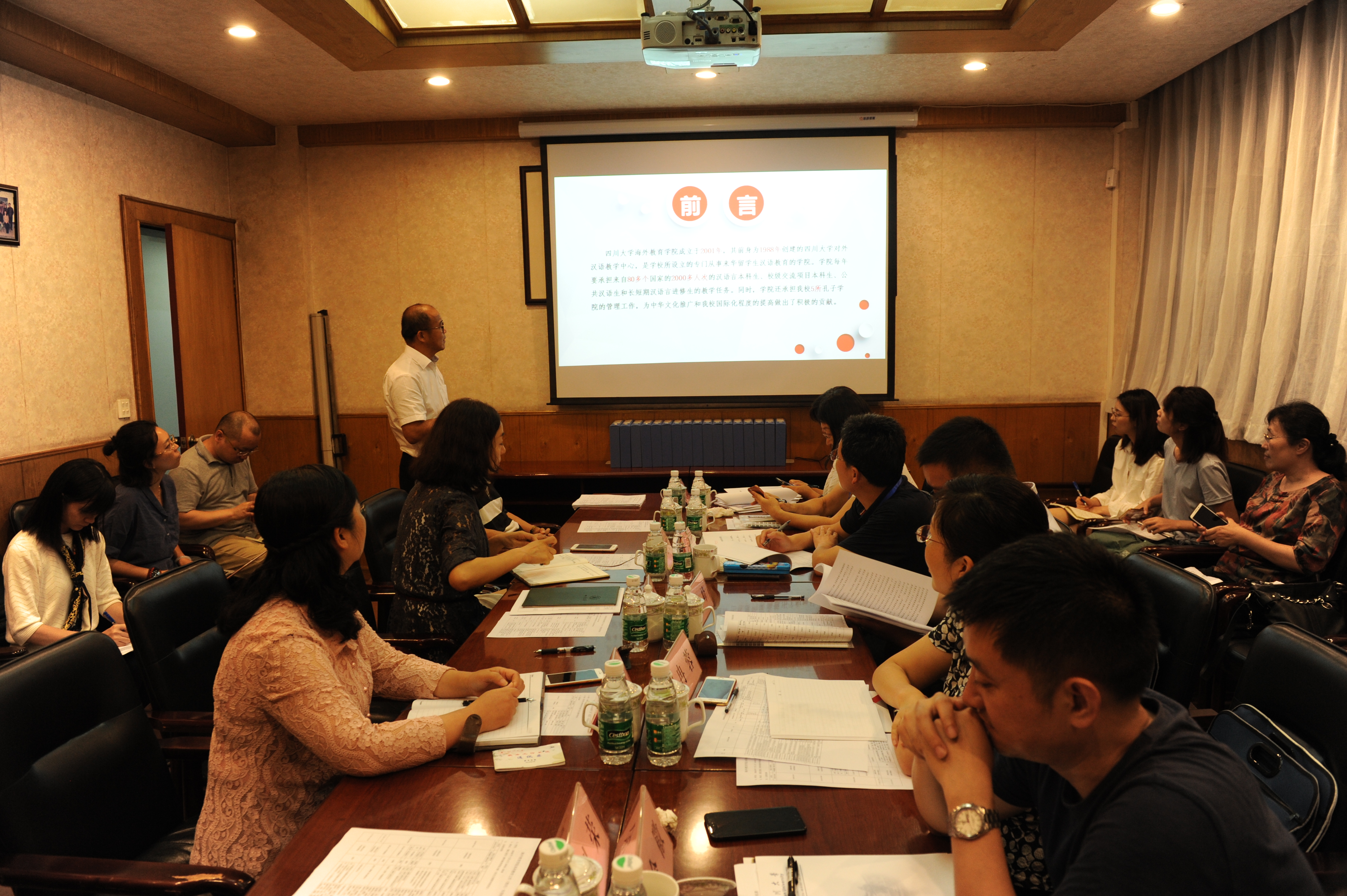 为迎接教育部本科教学评估,7月2号下午,学校本科教学工作专项检查专家组莅临我院检查、指导本科教学工作。专家组由教务处副处长严斌宇、双创办主任吴迪带队,专家组组长由外国语学院院长段峰教授担任,专家组由建环学院副院长兰中仁、高分子学院副院长冉蓉教授、化工学院副院长余徽教授、化工学院王煤教授、匹兹堡学院副院长陈薇组成。学院党委书记、院长高伟,副院长侯宏虹、雷莉,教务处陆晓霞老师、院教学督导组成员,各教研室主任,教师代表,教学管理人员和学生代表参加了此次专项检查。