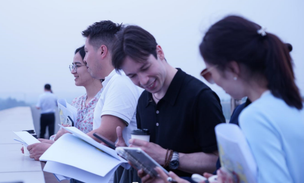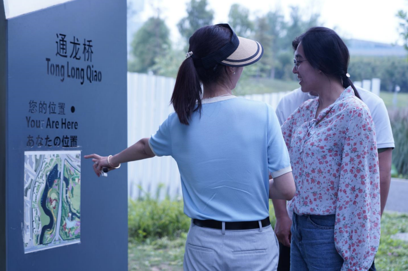 本次参与调研的三名来华留学生分别是,来自乌兹别克斯坦的朵拉、德国的史隽森和哥伦比亚的蓝冬少。本次的调研之行有三个点位,分别是天府新区数字文创城、天府新区中央商务区以及麓湖公园社区。