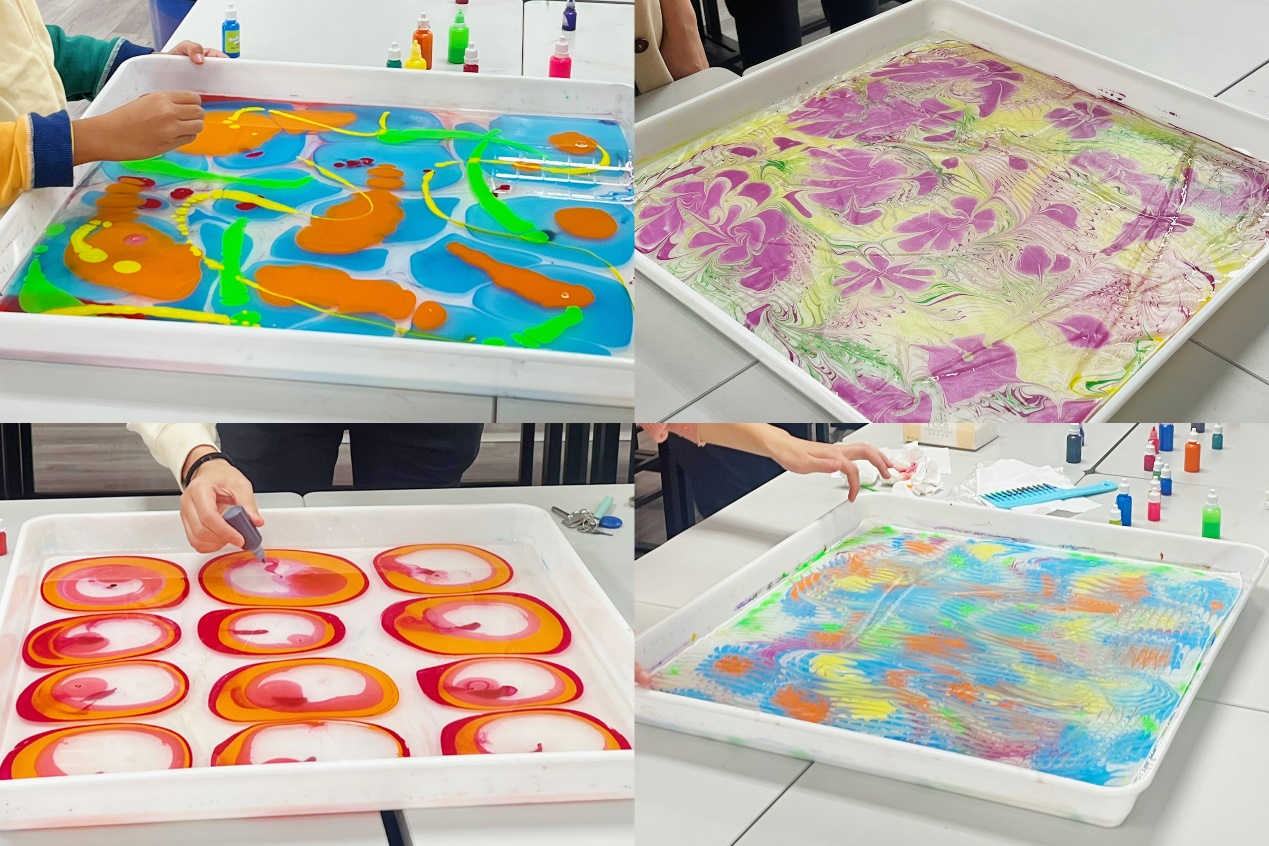 活动开始时,手工老师首先介绍了水拓丝巾这一非遗技艺,详细讲解了如何利用各色染料进行创作。教师们很快理解了制作步骤,纷纷开始使用自己的丝巾进行拓染。