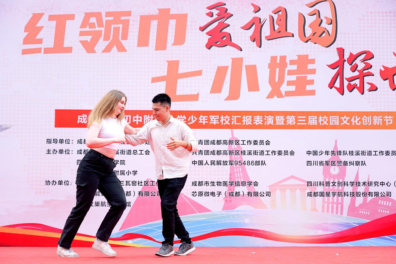 2024年5月31日上午,我院师生参加成都七中初中附属小学第三届校园文化创新节。实践课鲜丽霞教授、学生科刘廷林科长带领来自7个国家的7名留学生参加了本次活动。
