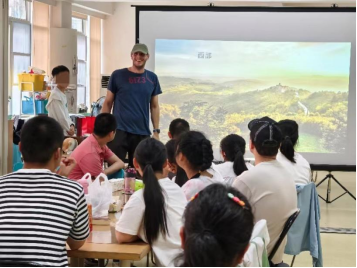 实践2班的同学受到了孩子们的热烈欢迎,全体孩子以手语舞《愿你》迎接留学生们的到来。接着,留学生介绍了自己的国家和文化,带着孩子们云游土耳其、斯洛文尼亚、塞尔维亚、德国、哥伦比亚、日本和韩国。孩子们一边领略各国的优美风光和精彩文化,一边积极地跟留学生分享自己的多元文化知识。新成立的Sichuan Bell Peppers乐队为孩子们献上了好听的歌曲,德国同学史隽森表演了吉他弹唱Make you feel my love,日本同学西川舞香和哥哥带来了歌曲Always coming back,韩国同学李用俊、哥伦比亚同学蓝冬少分别演唱了《虹》、《只是太爱你》。孩子们深深陶醉于他们潇洒的弹奏和深情的歌声中,跟着音乐节奏开心地挥手。