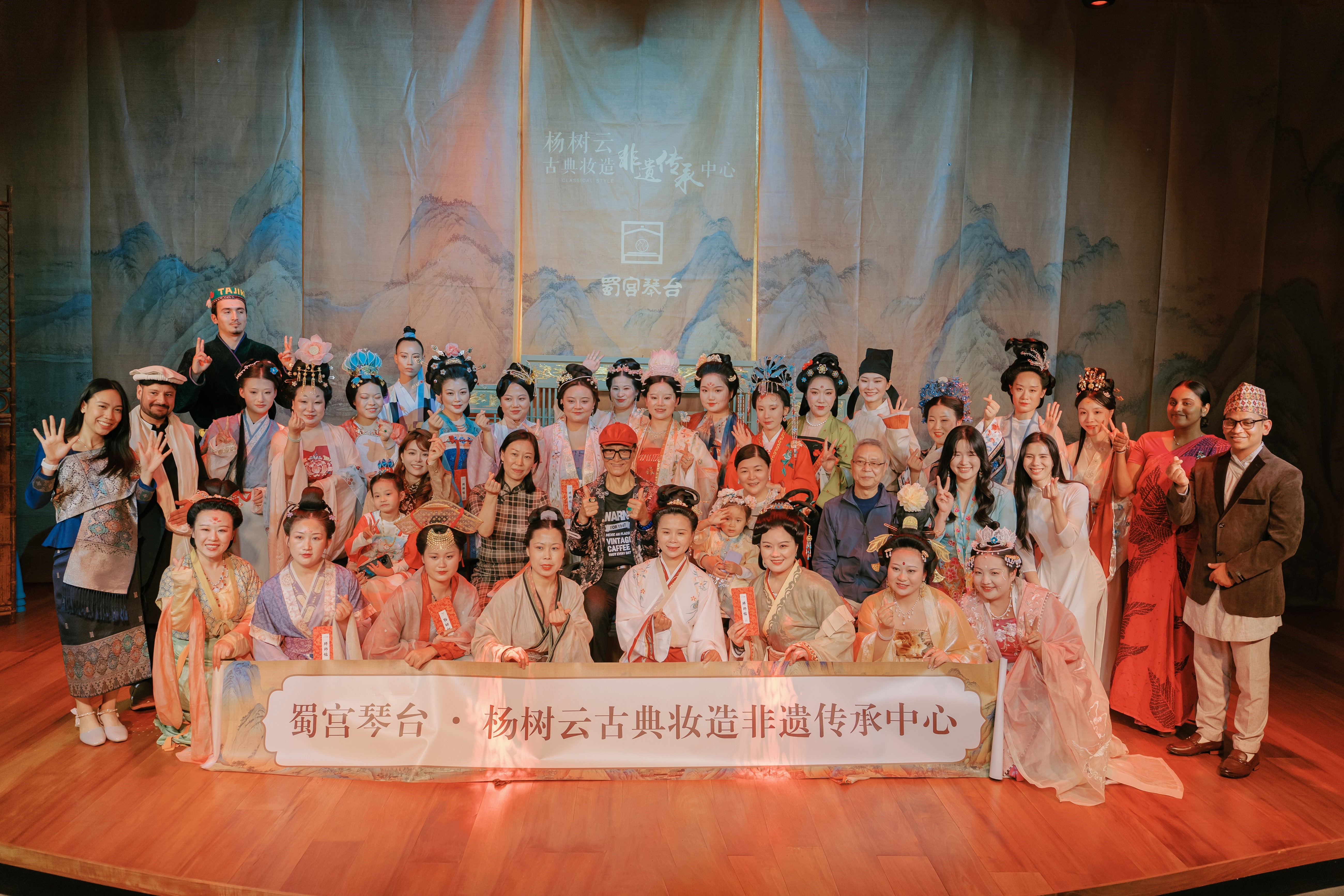 10月30日下午,yl23455永利集团海外教育学院与杨树云古典妆造非遗传承中心、蜀宫琴台文创场景体验馆联合举办的“丽行绘妆典,四海共风雅”汉服妆造展演活动在蜀宫琴台的翡馆拉开帷幕。修读《中华文化-2》这门课程的近50名来自25个国家和地区的留学生,与“杨树云古典妆造非遗传承研修班”第十九期学员齐聚一堂,开展了一场别开生面的语言文化实践活动。