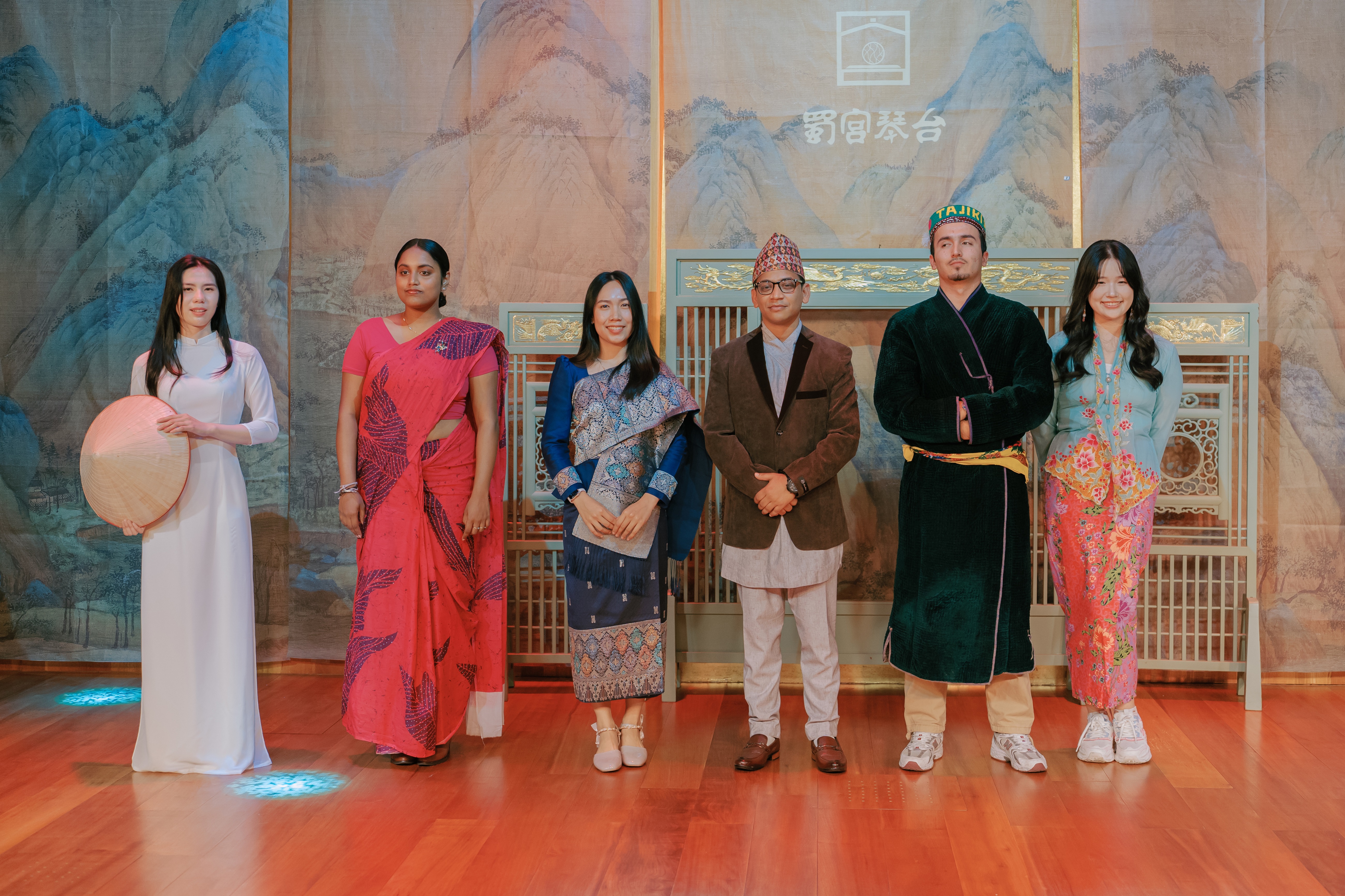 随后进行的是留学生民族服饰分享展示环节。来自斯里兰卡、老挝、尼泊尔、越南、马来西亚、塔吉克斯坦及巴基斯坦等国家的留学生们在各自展示自己的民族服饰的同时,还详细介绍了这些服饰的历史与文化寓意,让观众对各国服饰文化有了更深入的了解。留学生们在舞台上的表现收获了阵阵掌声。