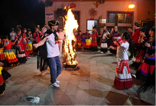 图7.在叙永县水潦彝族乡海涯村,留学生们围绕篝火载歌载舞