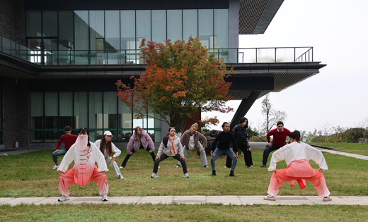 图2.留学生们在罗汉林学习八段锦