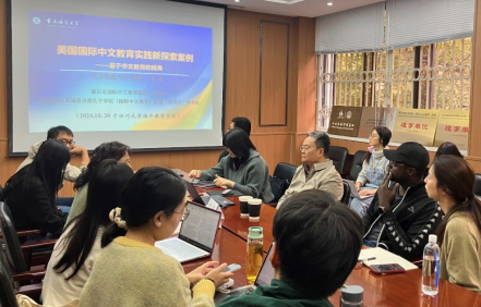 雷勇教授展示了大量的图片与视频,让到场师生直观地感受“中国风项目”的实践过程与丰硕成果。《美国“中国风”网上中文学习俱乐部》是教育部语合中心资助项目之一,该俱乐部针对低龄段(5-13岁)的华裔学生,课程内容包括熊猫知识、民歌欣赏、国画技巧、剪纸艺术、美食文化、棋艺学习、民俗体验、舞蹈演练、武术基础、书法修习、茶艺介绍、电影赏析等等。雷勇教授强调,华文教育对于推动优秀中华文化传播、增进世界各国与中国的友谊具有重要意义。此次讲座帮助我院师生拓展了学术视野,增强了从事国际中文教育研究的成就感。