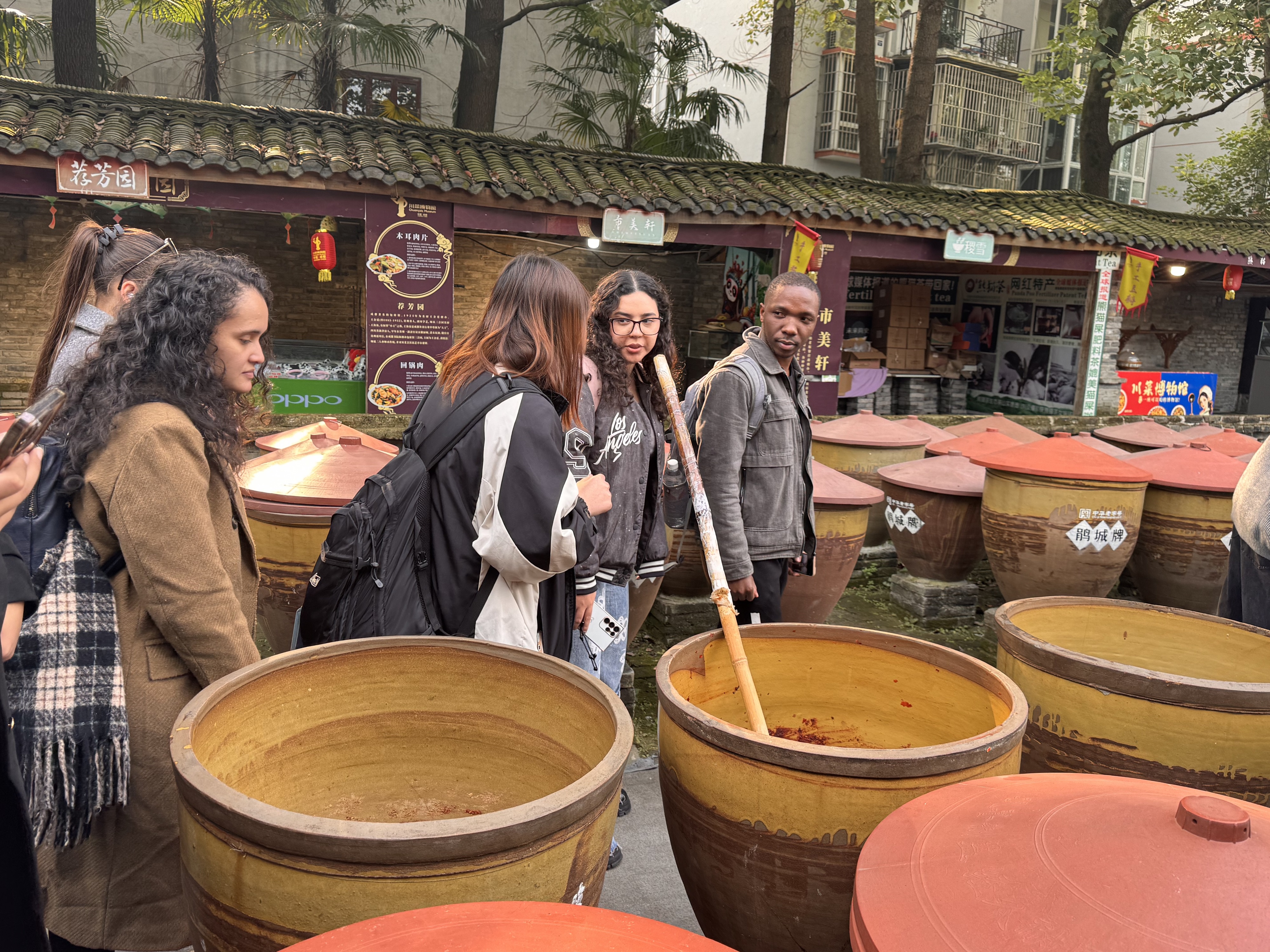 随后,同学们深入体验了郫县豆瓣三百余年传统制作工艺以及酱油酿造过程。这一过程如同一场古老工艺的传承仪式,同学们仿佛成为了历史文化的传承者,在豆香与酱香的氤氲中,感受到传统工艺的厚重与细腻。而在灶王祠的参观之旅,则像是走进了四川民俗文化的神圣殿堂,同学们在静谧中领悟着历史悠久的灶王祭祀文化的深邃内涵。