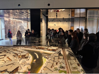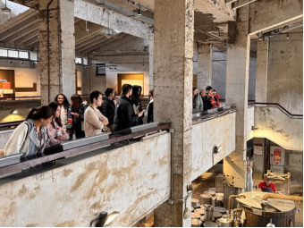 接着,留学生们跟随讲解员踏入“遗址馆”,明、清、现代三个时代的传统白酒酿造作坊映入眼帘,留学生们亲眼看到了“晾堂、酒窖、蒸馏用具”等酿酒设备,随后在技艺厅,白酒的发酵流程和浓香酒的酿造蒸馏过程真实地展现在大家面前,现场工人蒸酒的场景更是吸引了同学们的目光。不少同学主动向讲解员询问酿酒的温度和时间,并且对酒的价格、传统工具、酿酒传承人等相关知识表现出浓厚的兴趣。