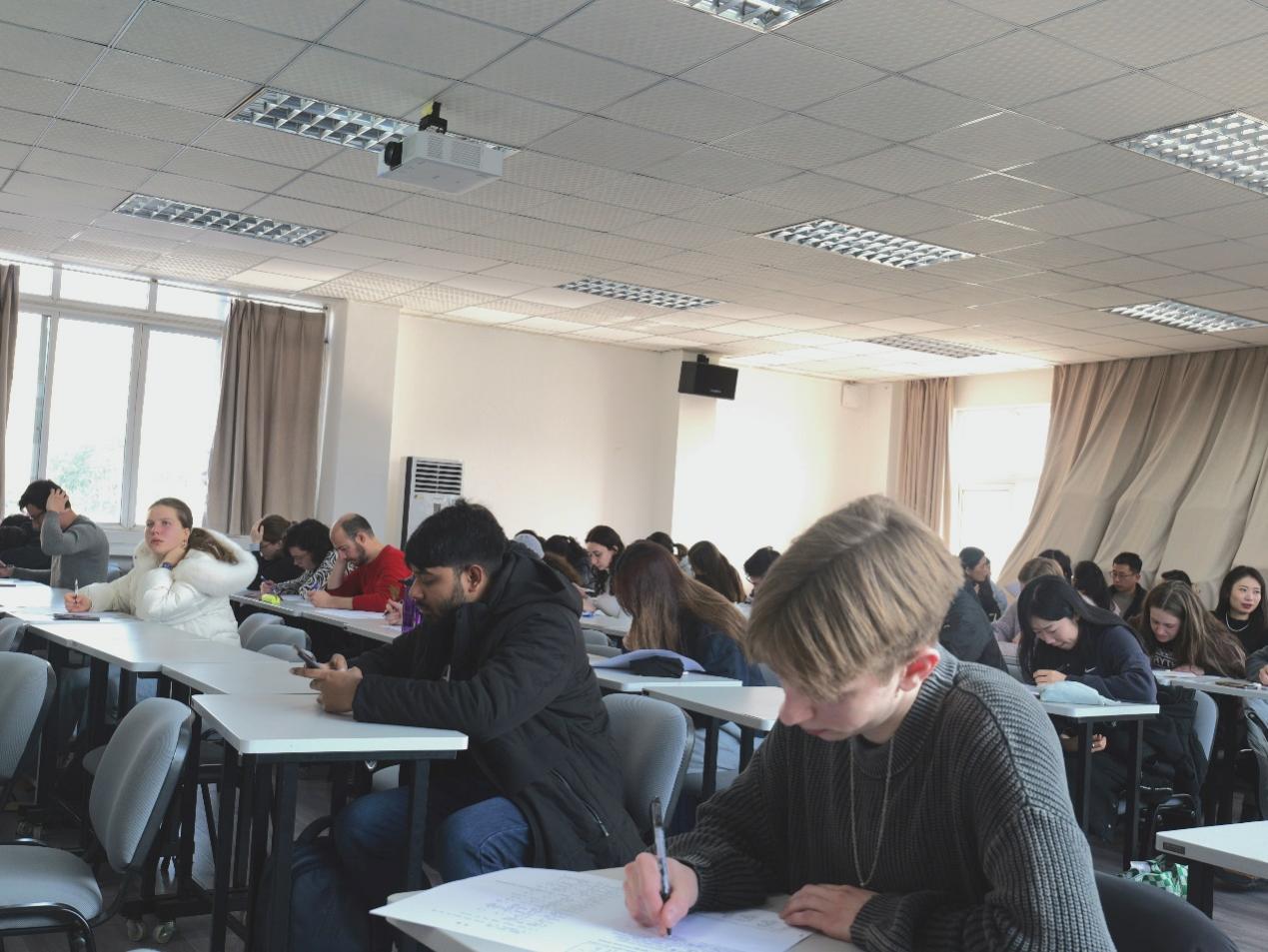 新生说明会暨开学第一课结束后,新生们参加了汉语水平测试,他们认真地完成了笔试和口试,展现了良好的学习热情和态度。