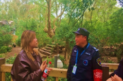 邓老师为实践一班同学们布置了实践任务,就是分组到各个大熊猫别墅进行参观并采访游客或工作人员;实践二班同学则首先参观了成都大熊猫博物馆,随后分组参观采访。