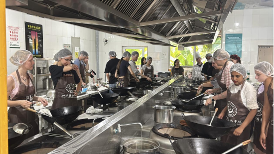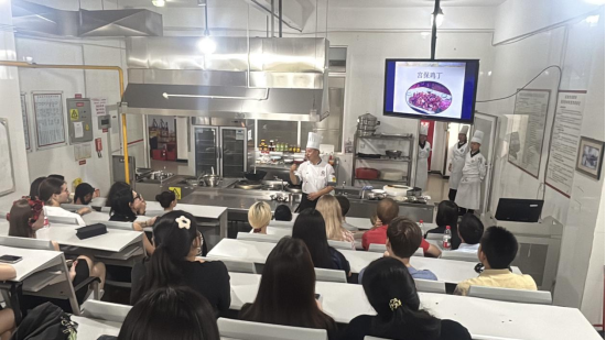 5月15日下午,yl23455永利集团海外教育学院汉语实践活动在四川旅游学院烹饪与食品工程学院顺利开展。在程文、邓波老师的带领以及工作人员的指导下,同学们通过实地探访与沉浸式体验,感受、触摸并品尝了成都的川菜文化,系统探究了川菜的历史逻辑、制作基础及全球化表达,并在实践中架起连接语言与文化的桥梁,提升了汉语表达与文化理解能力。