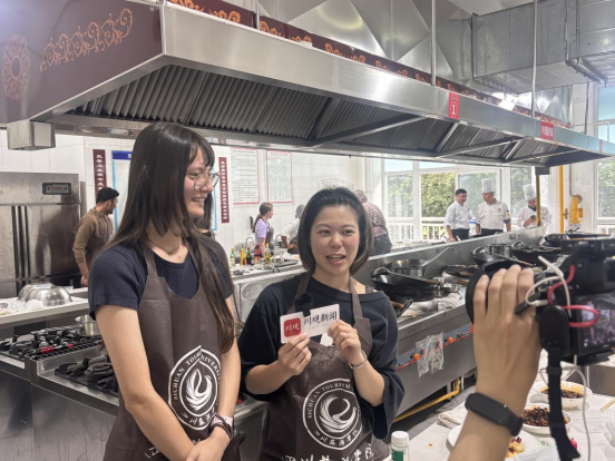 随后,川观新闻的记者对留学生同学们进行了采访。来自澳大利亚的来悦岚同学笑称:“本次体验最深的是我端不起锅,可能需要去健身房多锻炼锻炼。”大家都露出了然的笑容,现场氛围一派温馨和谐。本次课程不仅让同学们在烟火气里读懂了川菜,更在锅铲舞动之间架起了跨文化理解的桥梁。