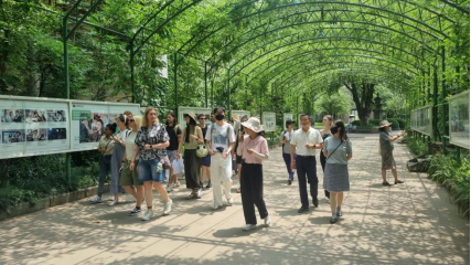随后,留学生们穿过种满桃树与李树的“学习后院”,来到校内的女红工艺博物馆和蜀绣传承基地。在博物馆中,同学们深入了解了各类传统布艺作品;在蜀绣传承基地,观赏了由蜀绣大师携手本校服装设计专业学生共同完成的作品展。