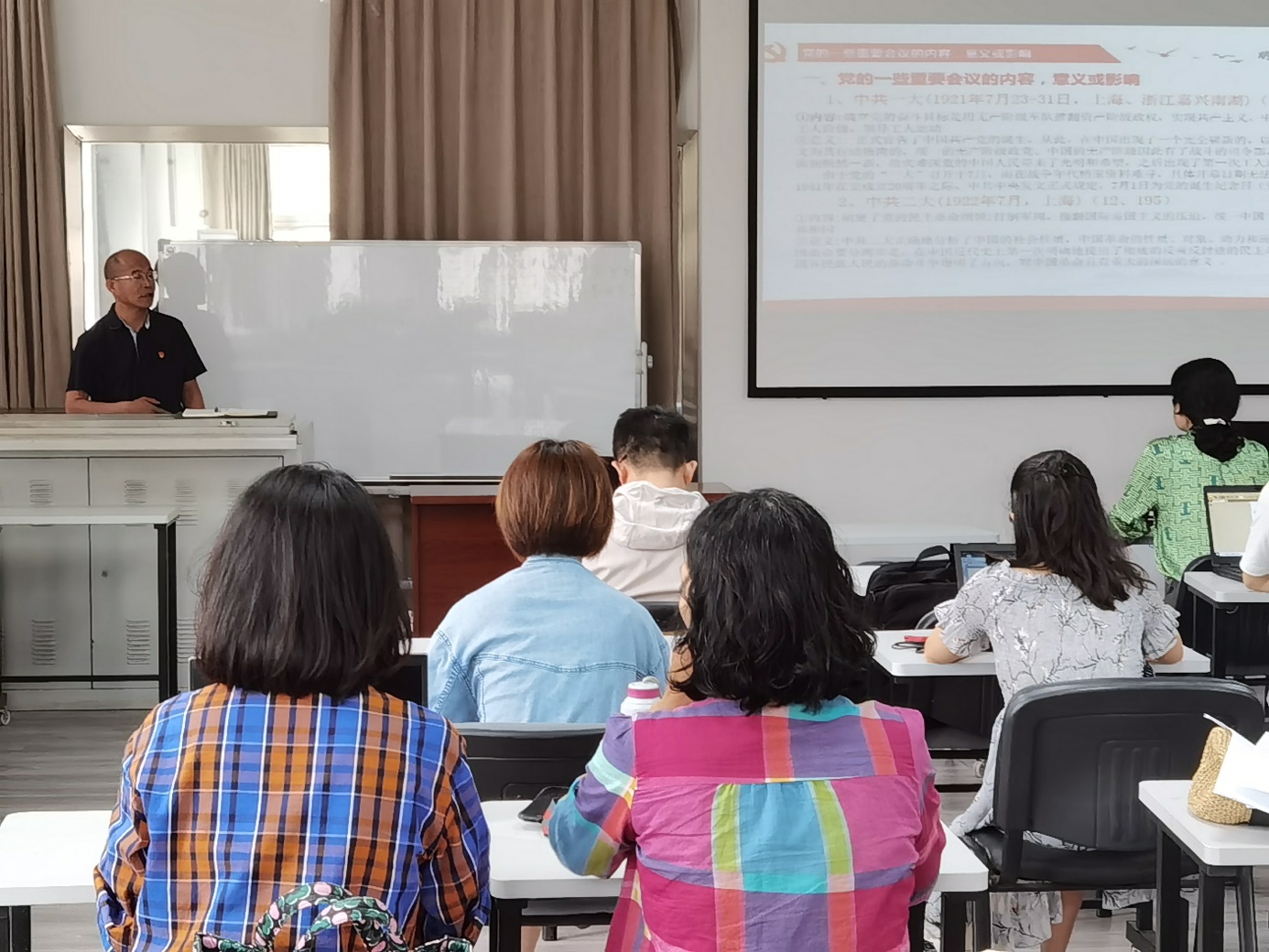 高伟从党的一些重要会议的内容、意义或影响,标志党的三次工作重心转移的重要会议和标志党的三次重大转折点的重要会议等三方面对中国共产党的历史进行了阐述。再一次让大家深刻认识红色政权来之不易、新中国来之不易、中国特色社会主义来之不易,坚定对马克思主义信仰,对社会主义、共产主义的信念,对实现中华民族伟大复兴中国梦的信心。