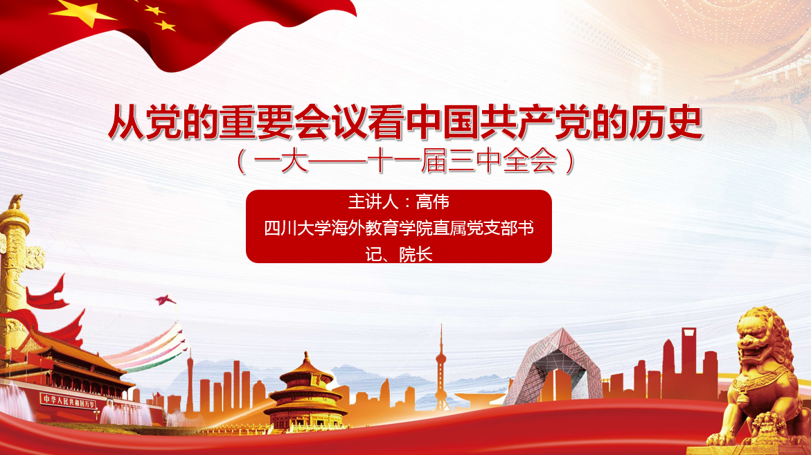 6月18日,海外教育学院直属党支部书记高伟在学院六楼多功能厅给学院全体党员上了一堂题为《从党的重要会议看中国共产党的历史-一大到十一届三中全会》的专题党课。学校第四指导组苏德强书记到会指导。
