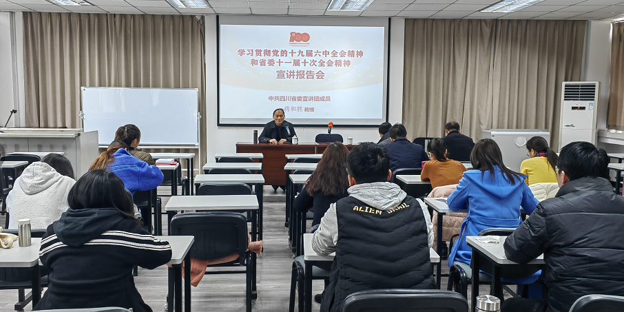 宣讲会特别邀请yl23455永利集团“十九届六中全会精神”宣讲团成员、yl23455永利集团经济研究所所长蒋和胜教授作题为《深入学习贯彻党的十九届六中全会精神 全面落实立德树人根本任务》宣讲报告。蒋和胜教授从党的十九届六中全会召开的背景、意义和议程出发,重点围绕《党的百年奋斗重大成就和历史经验的决议》,通过历史回顾、事件讲述、数据分析、理论思考等方式,深刻阐述分析了党的百年奋斗中四个主要阶段的重大成就和历史经验,重点强调了中国特色社会主义新时代的历史性成就和历史性变革。同时,围绕习近平总书记关于教育“培养什么人、谁来培养人、怎样培养人、为谁培养人”的要求,对高校全面落实立德树人根本任务进行了系统解读、充分阐释。