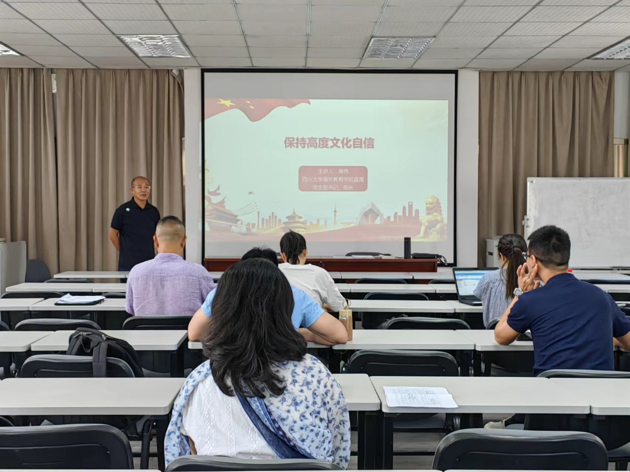为庆祝中国共产党成立102周年,推动学习贯彻习近平新时代中国特色社会主义思想主题教育走深走实,630下午,海外教育学院直属党支部在学院六楼报告厅开展“迎七一”主题教育专题党课活动。学院直属党支部书记高伟作题为《保持文化自信》的专题党课。