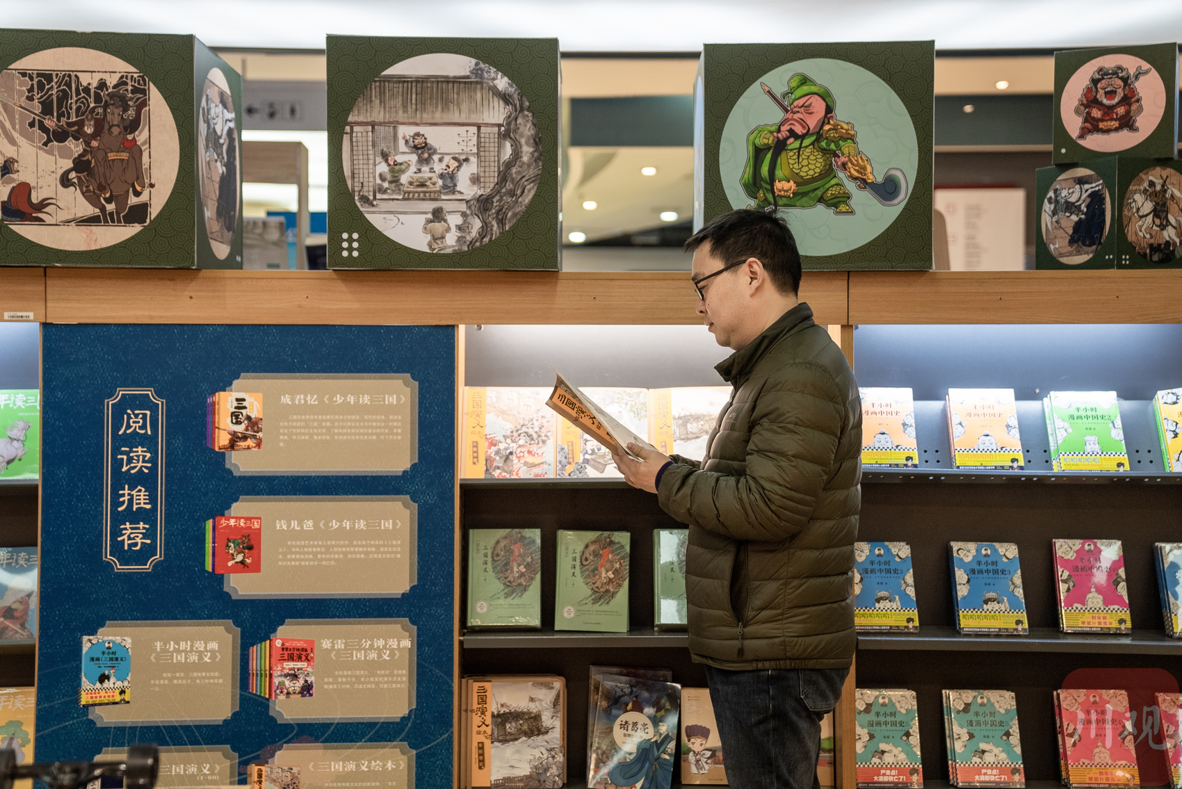 12月2日,川观新闻记者在位于新华文轩成都购书中心的三国文化体验空间——“三国梦想·家”看到,空间内设计了多项主题教育活动,读者在逛书店的同时,可以沉浸式感受三国文化。空间主理人陈凯表示,空间得到成都武侯祠博物馆授权,挂牌“成都武侯祠三国书屋”,同时这也是全国首家“书店+博物馆”三国文化体验空间。市民还可在此参加文创美学活动,亲自制作三国文创。3000多册藏书按照“趣三国”、“绘三国”、“品三国”主题进行展示,这里将是全国三国主题图书最丰富的书店。