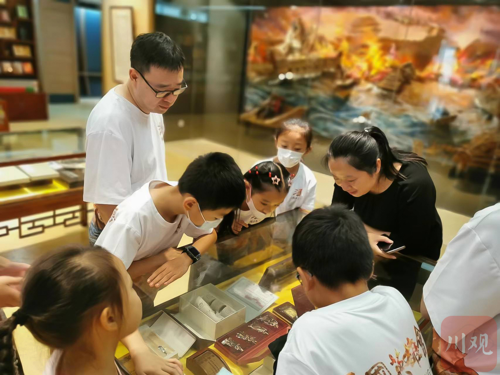 儿童在参观空间内陈列的与三国有关的文物(资料图片)