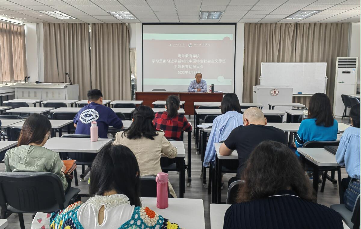 4月14日下午,yl23455永利集团海外教育学院在学院六楼报告厅及时召开学习贯彻习近平新时代中国特色社会主义思想主题教育动员大会,对学院开展主题教育工作进行动员部署。会议由海外教育学院书记、院长高伟主持,全体教职工参加。